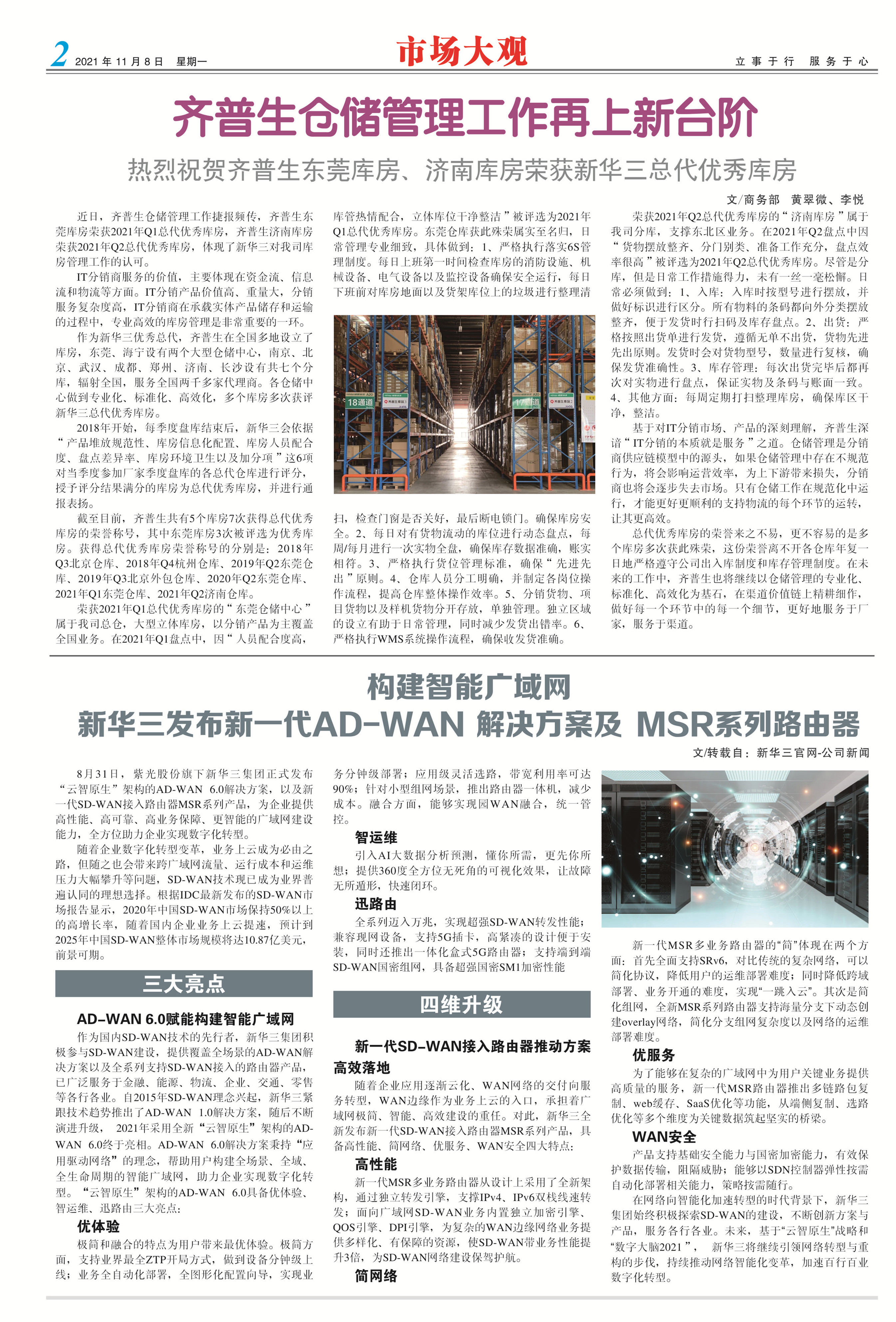 齊普生倉儲管理工作再上新臺階—— 熱烈祝賀齊普生東莞庫房、濟(jì)南庫房榮獲新華三總代優(yōu)秀庫房