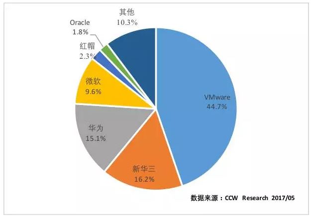 報告顯示,從市場份額角度看,2016年,VMware仍然占據(jù)中國服務(wù)器虛擬化市場第一的位置,但市場份額從前一年已的47.8%降到了44.7%。新華三則從前一年的13.8%上升到16.2%,華為的份額同樣有所增長,而Citrix則跌出了單獨列出的前六名廠商之外,產(chǎn)品重心更加傾向于桌面及移動IT產(chǎn)品。