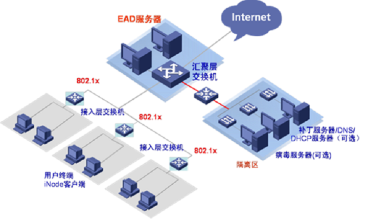 簡介:對于要接入安全網(wǎng)絡(luò)的用戶,EAD解決方案首先要對其進(jìn)行身份認(rèn)證,通過身份認(rèn)證的用戶進(jìn)行終端的安全認(rèn)證,根據(jù)網(wǎng)絡(luò)管理員定制的安全策略進(jìn)行包括病毒庫更新情況、系統(tǒng)補(bǔ)丁安裝情況、軟件的黑白名單、U盤外設(shè)使用情況、軟硬件資產(chǎn)信息等內(nèi)容的安全檢查,根據(jù)檢查的結(jié)果,EAD對用戶網(wǎng)絡(luò)準(zhǔn)入進(jìn)行授權(quán)和控制。通過安全認(rèn)證后,用戶可以正常使用網(wǎng)絡(luò),與此同時,EAD可以對用戶終端運行情況和網(wǎng)絡(luò)使用情況進(jìn)行審計和監(jiān)控。